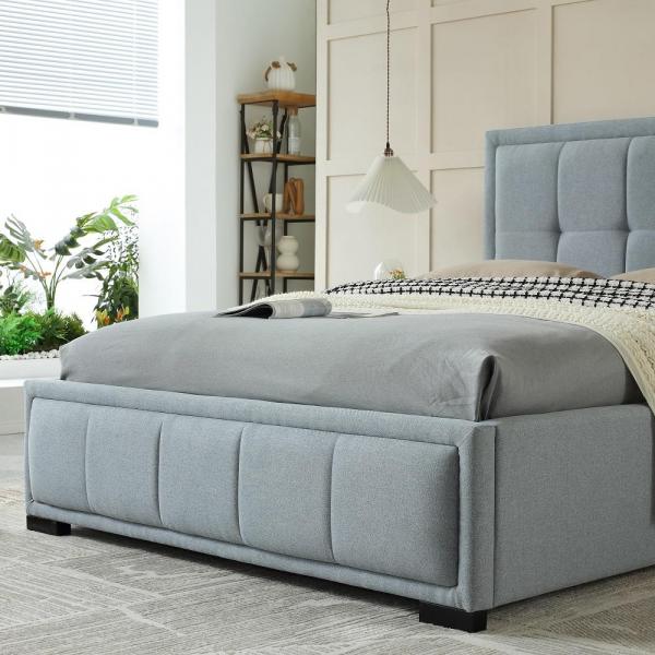 MB3610ZT | Cama tapizada de tela de algodón de botones de lujo gris azul
