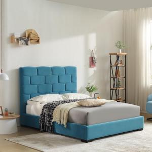 MB3562ZT | Cama tapizada minimalista con formas de cubo de ladrillo Azul claro