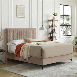MB3601ZT | Cama tapizada de tela de algodón de diseño moderno Color crema claro