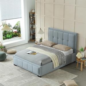 MB3610ZT | Cama tapizada de tela de algodón de botones de lujo gris azul