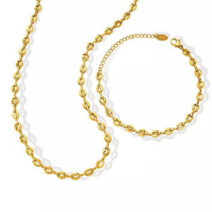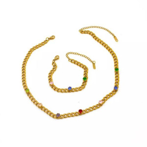 Juego de Collar y Pulsera Retro Acero Titanio chapado Pedreria, en Acero Inoxidable