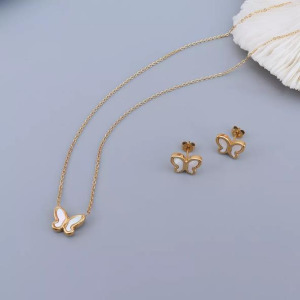 Juego de Collar y Pendientes Moda Mariposa Acero Inoxidable Acero Titanio Enchapado Embutido Cascarón
