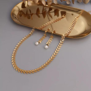 Juego de Collar y Pendientes Moda Geometrica Acero Inoxidables chapado en Oro con Perla de Colgante
