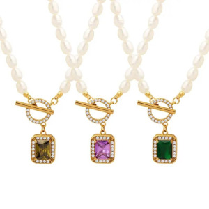 Collares Moda Cuadrado Acero Inoxidable enchapados embutido en Pedreria y Circon