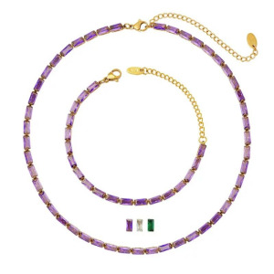 Juego de Collar y Pulsera en cuentas Moradas y Aceros Inoxidable