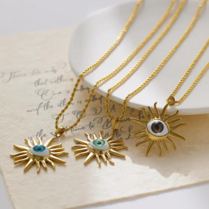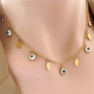 Collar Colgante Moda Ojo del Diablo con Hojas Acero Inoxidable Chapado en Oro