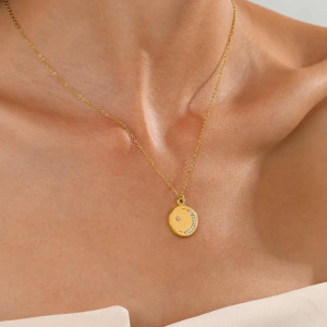 Collar diseño Simple chapado en Orio con colgante moneda en acero inoxidable