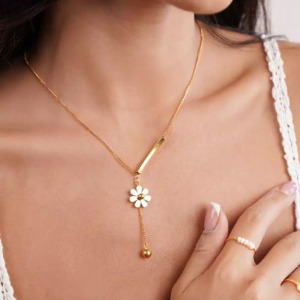 Collar diseño Fantasia, Colgante en forma de Flor con borla chapada en Oro, Acero Inoxidable