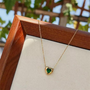 Collar diseño Romantico Colgante Corazòn embutido en pedreria y circon, chapado en Oro, Acero Inoxidable