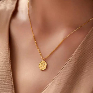 Collar diseño Simple con Colgante medalla, chapada en Oro Acero Inoxidable