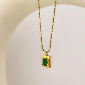 Collar diseño Simple colgante cuadrado embutido en pedreria, Acero Inoxidable, chapado en Oro