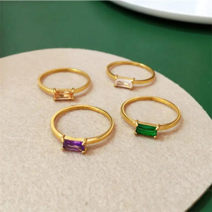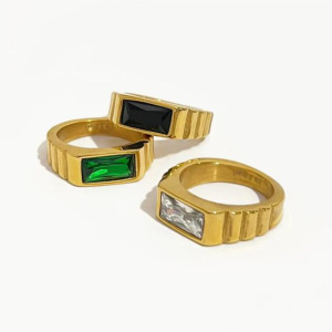 Anillo sello delgado con piedra esmeralda, enamel, de acero inoxidable, chapado en oro 18k