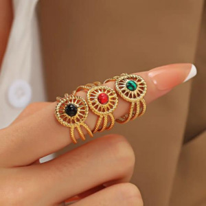 Delicado anillo bohemio ajustable abierto, de acero inoxidable, chapado en oro 18k