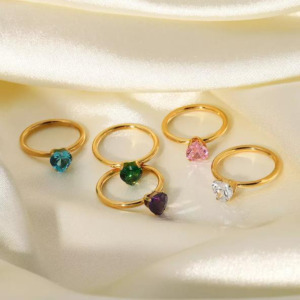 Dulce Forma de Corazón Acero Inoxidable embutido con circon chapado Anillo Abierto