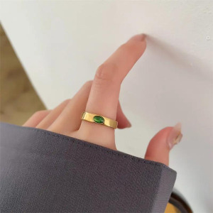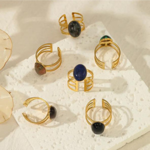 Anillo Gemstone con Inlaid, en acero inoxidable, chapado en oro 14k, Ladies Open