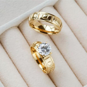 Anillos de compromiso, en acero inoxidable, para dama y caballero, con hermoso circon.