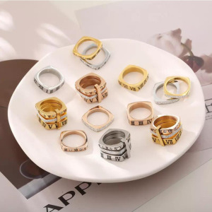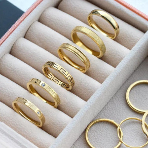 Set de anillos para dama, estilo Cartier, sencillo, chapado en oro 14k, acero inoxidable