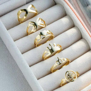 Set de anillos para dama, diseño sencillo, chapado en oro 14k, acero inoxidable