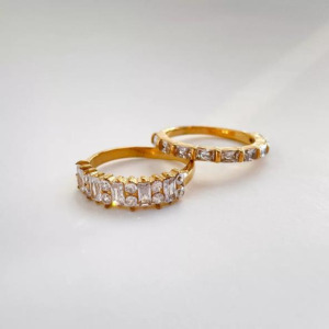 Juego de anillos chapado en oro 14k de mujer, en acero inoxidable estilo Cartier