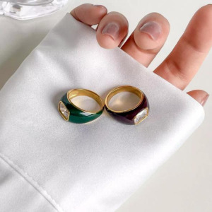 Anillos para dama, Estilo Retro, Aleacion en esmalte verde y azul con circon, en acero inoxidable.