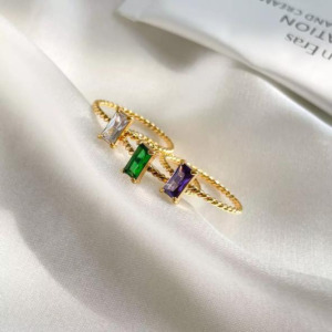 Anillo delgado Estilo Retro Geometrico con pedreria de colores