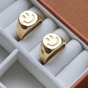 Anillo Estilo redondo carita sonriente, acero inoxidable de dama