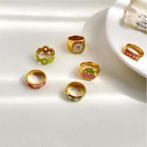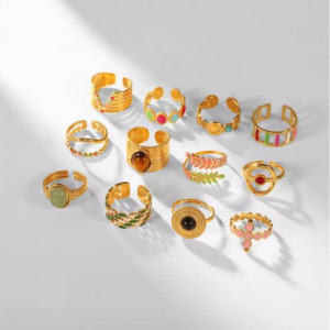 Anillos elegantes, retro, chapado en oro 18k, acero inoxidable