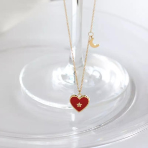 Collar diseño Corazon Romantico en Rojo, chapado en Oro, Acero Inoxidable