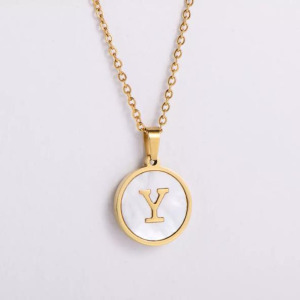 Collar Colgante de Acero de Titanio de 26 Letras Concha Redonda de Acero Inoxidable de Moda