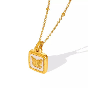 Collar Moda Mariposa Fantasia, chapada en Oro, Acero Inoxidable