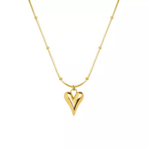Collar diseño Delicado, con Colgante chapado en Oro en forma de Corazon, Acero Inoxidable