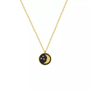 Moda Luna y Estrellas, Collar con colgante en Acero Inoxidable, chapado en Oro