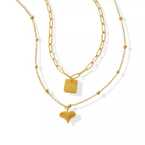 Collares en Tendencia, Moda corazon y Medalla diseño solido, chapado en Oro, Acero Inoxidable