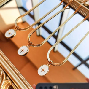 Moda Estrella Brillante, collar en Acero Inoxidable, chapado en Oro