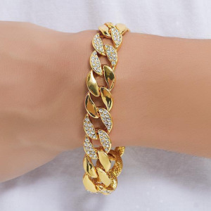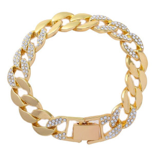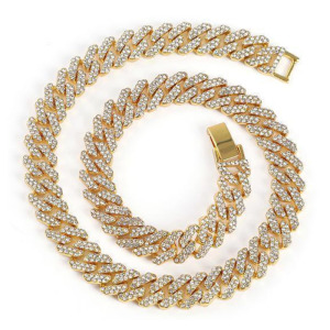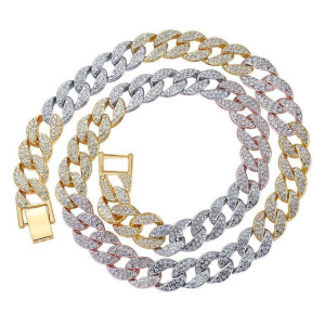 Cadena Hip Hop para Hombres de cadena de eslabones cubanos acabado en dorado de diamantes de imitación