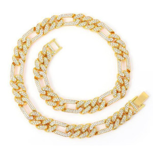 Cadena de Aleación Cubana embutida de Diamantes Imitacion Completo Hip Hop