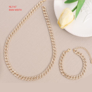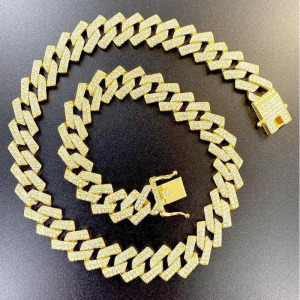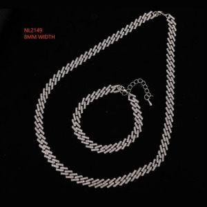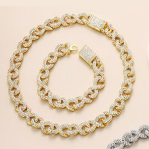 Juego de Cadena y Pulsera de Aleación Cubana embutida de Diamantes Imitacion Completo Hip Hop