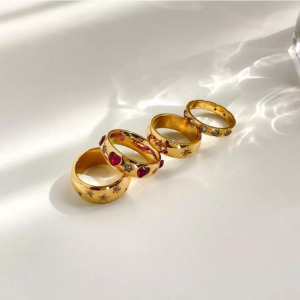 Anillos, estilo simple, geometricos, con pedreria, en acero inoxidable, chapado en oro.