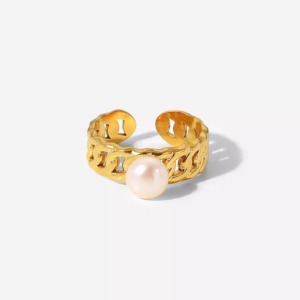 Anillos, estilo simple, geometricos, con pedreria, en acero inoxidable, chapado en oro.