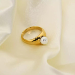 Anillo De Acero Inoxidable Con Perla De Concha De Moda