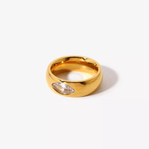 Anillos de Acero inoxidable, diseño geometrico con piedras chapado en oro