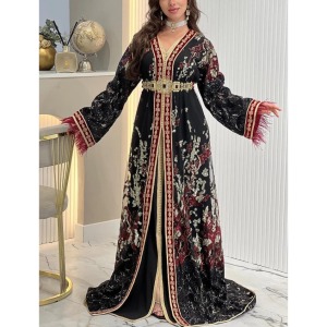 Vestidos Maxi negro colorido con cuentas y flecos en las mangas para mujer musulmana árabe