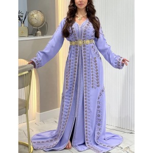 Vestido caftán estilo árabe color violeta con cinturón para mujer Abaya de Dubái moda colorida