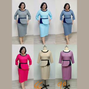 Vestido elegante formal tallas grandes cuello redondo manga 3/4 en gris azul fucsia durazno y purpura