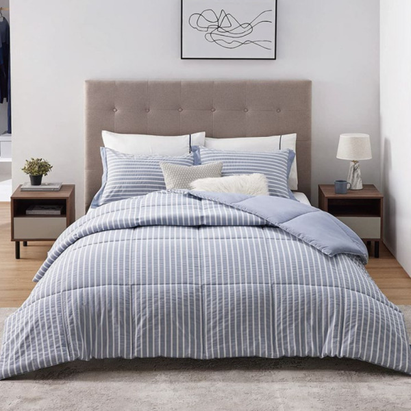 Juego de edredón estampado reversible y piezas sólidas