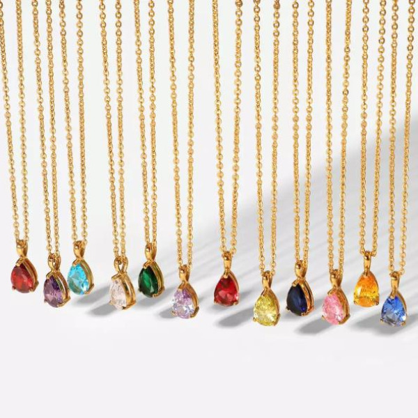 Tipo producto Joyería Tipo Joya Collar Composición Acero Inoxidable Parilti SKU ps-coll128 Collar diseño Fantasia colgante en forma de lagrima, embutida en pedreria, Acero Inoxidable Solicito presupuesto