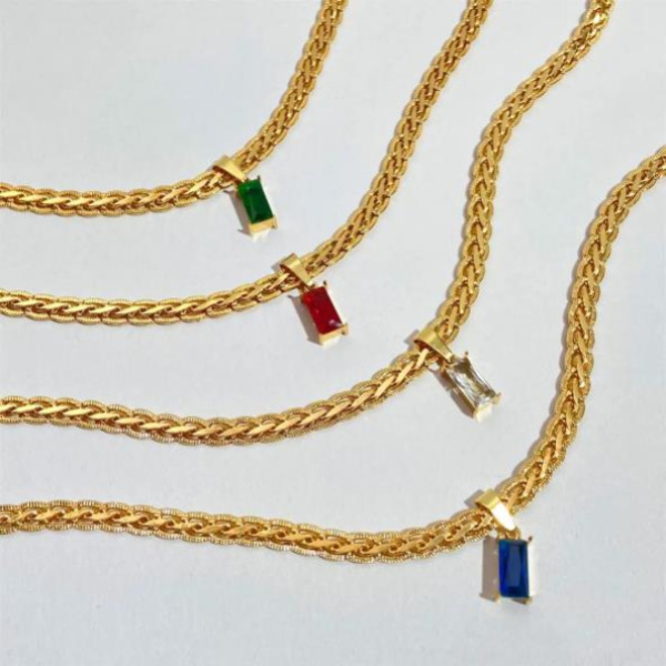 Tipo producto Joyería Tipo Joya Collar Composición Acero Inoxidable Parilti SKU ps-coll086 Collar diseño Geometrico Acero Inoxidable con colgante rectangular embutido en pedreria Solicito presupuesto