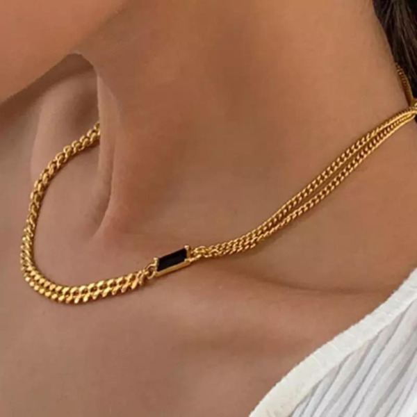 Tipo producto Joyería Tipo Joya Collar Composición Acero Inoxidable Parilti SKU ps-coll122 Collar Moda Elegante colgante rectangular embutido en pedreria, chapado en Oro, Acero Inoxidable Solicito presupuesto