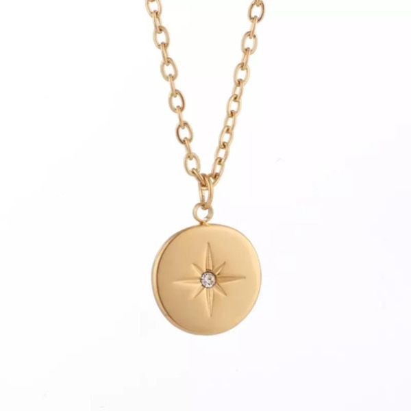 Tipo producto Joyería Tipo Joya Collar Composición Acero Inoxidable Parilti SKU ps-coll268 Diseño Medalla con Estrella embutida en circon, Collar chapado en Oro Solicito presupuesto