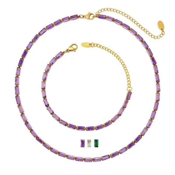 Tipo producto Joyería Tipo Joya Collar Composición Acero Inoxidable Parilti SKU ps-coll033 Juego de Collar y Pulsera en cuentas Moradas y Aceros Inoxidable Solicito presupuesto